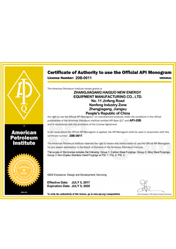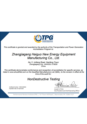 公司取得了美國(guó)ABS、法國(guó)BV、中國(guó)CCS、挪威DNVGL、韓國(guó)KR、英國(guó)LR、日本NK、意大利RINA等全球八大船級(jí)社的工廠認(rèn)證證書(shū),建立了完善的產(chǎn)品質(zhì)量管理體系。先后獲得了美國(guó)API20B資質(zhì)證書(shū)、API6A資質(zhì)證書(shū)、APIQ1體系證書(shū)、TPG的NDT認(rèn)證證書(shū)、TPG 熱處理認(rèn)證證書(shū)、歐盟PED等認(rèn)證證書(shū),同時(shí)也通過(guò)了一些國(guó)際客戶(hù)具有高度專(zhuān)業(yè)要求的資格認(rèn)證。